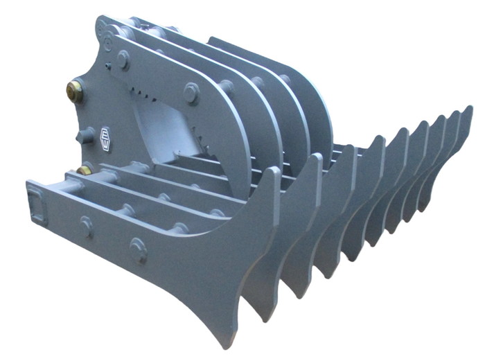 レーキ兼用油圧式フォーク「レーキングラブ」「レーキングラブ」は、強度・耐摩耗性に優れた本格レーキで原野や森林などでの不要な低木の除去、伐根、除草、集草、掘削、石の除去やふるい分け、油圧式フォークで集積・積み込みを1台で行うことができるレーキ兼用フォークです。