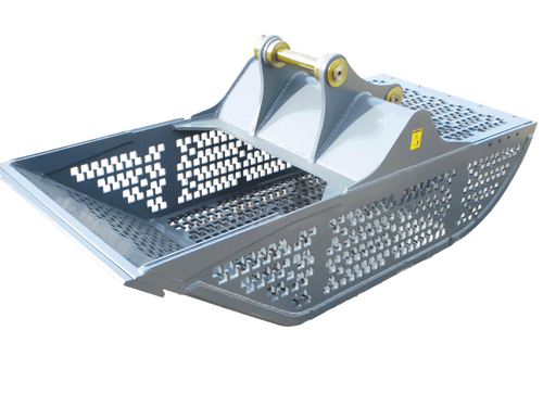 徐レキバケット「箱舟」「箱舟」は主に畑の徐レキや、骨材(砂利)の粉分などの除去などに用いるふるい分けバケットです。一度の掘削で大きな面積を処理できるため、面の仕事に適しており、舟形となっているため、強振してもこぼれ落ちることなく、強制的に排出作業ができます。