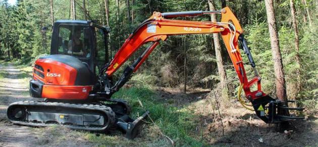 軽量で扱い易く、ベースマシンは油圧2本配管で使用できる利便性の高い伐倒機械です。取り付け油圧ショベルの範囲を広げ、兼用機として汎用性を高めています。