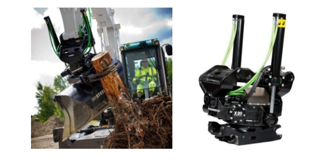 スウェーデンSTEEL WRIST製のこの商品は、ヨーロッパではすでに主流の商品です。機械足場を変えずに、あらゆる方向の掘削、盛土、フォークグラップル作業、リフト作業等が可能となります。狭いスペースの都市土木や足場が悪い林地現場、鉄道軌陸上での作業に威力を発揮します。
